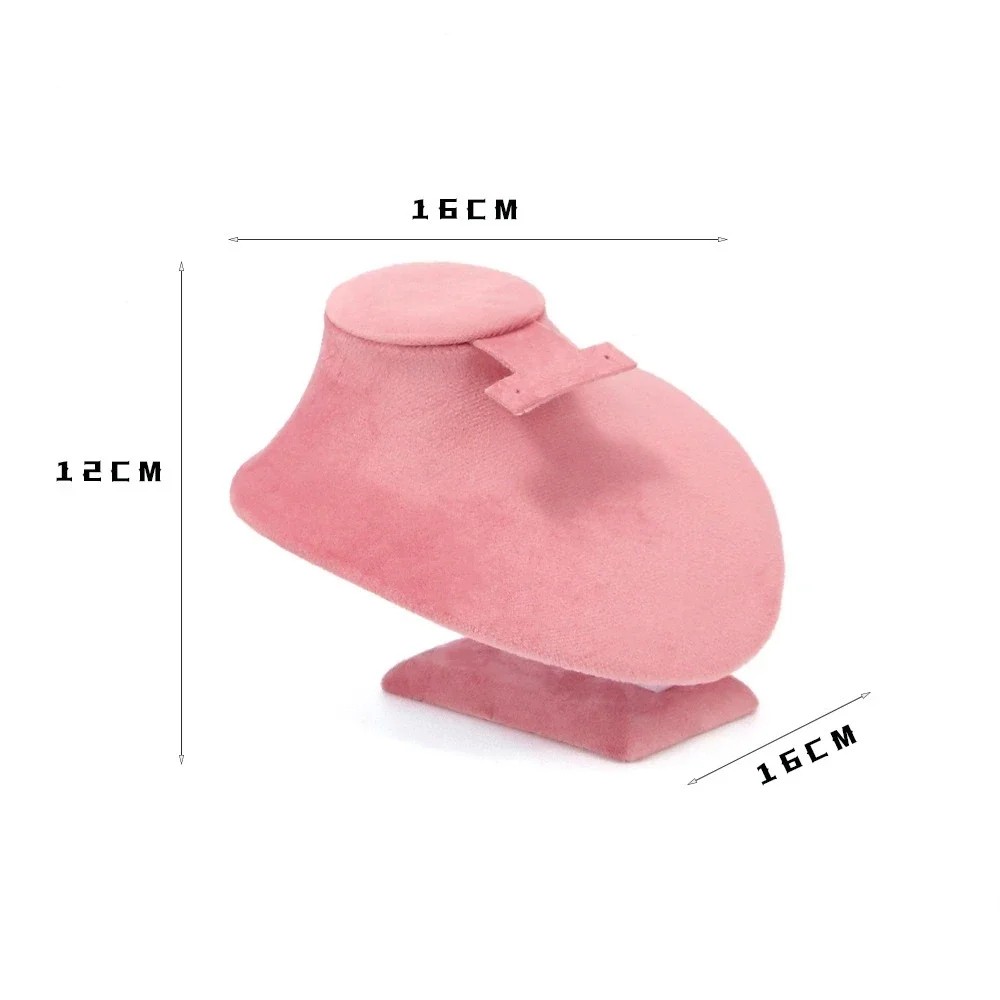 Velvet Necklace and Earring Stand 16 × 16 × 12 cm Pink Velvet Décolleté Jewellery Display Stand with Earring Holder