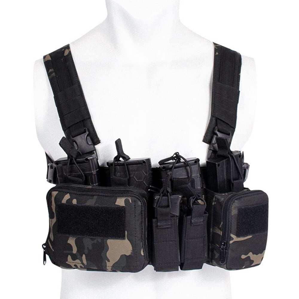 This tactical chest vest is made from lightweight nylon, allowing for easy movement. It features ample storage space. It represents the perfect way to carry all the essential gear. Several pockets enable you to store everything you need. The MOLLE webbing ensures secure attachment.