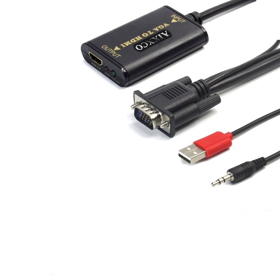 Connectors: USB (male), 3.5mm jack (male), VGA (male), HDMI output (female)