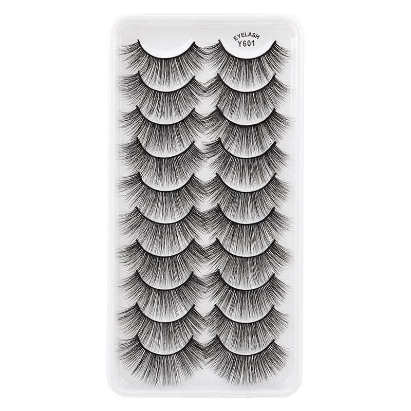Voluminous Artificial Eyelashes 10 Pairs False 3D Adhesive Black Lashes Extension Set
