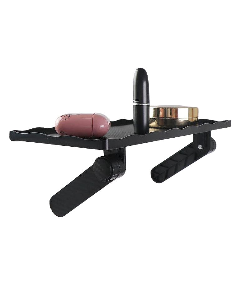 Folding shelf that easily hooks onto the corner of a monitor or television. Installation without drilling or screwing. Store your Wi-Fi antenna, set-top box, remote control, or other small items conveniently. The perimeter features an elegant wave design.