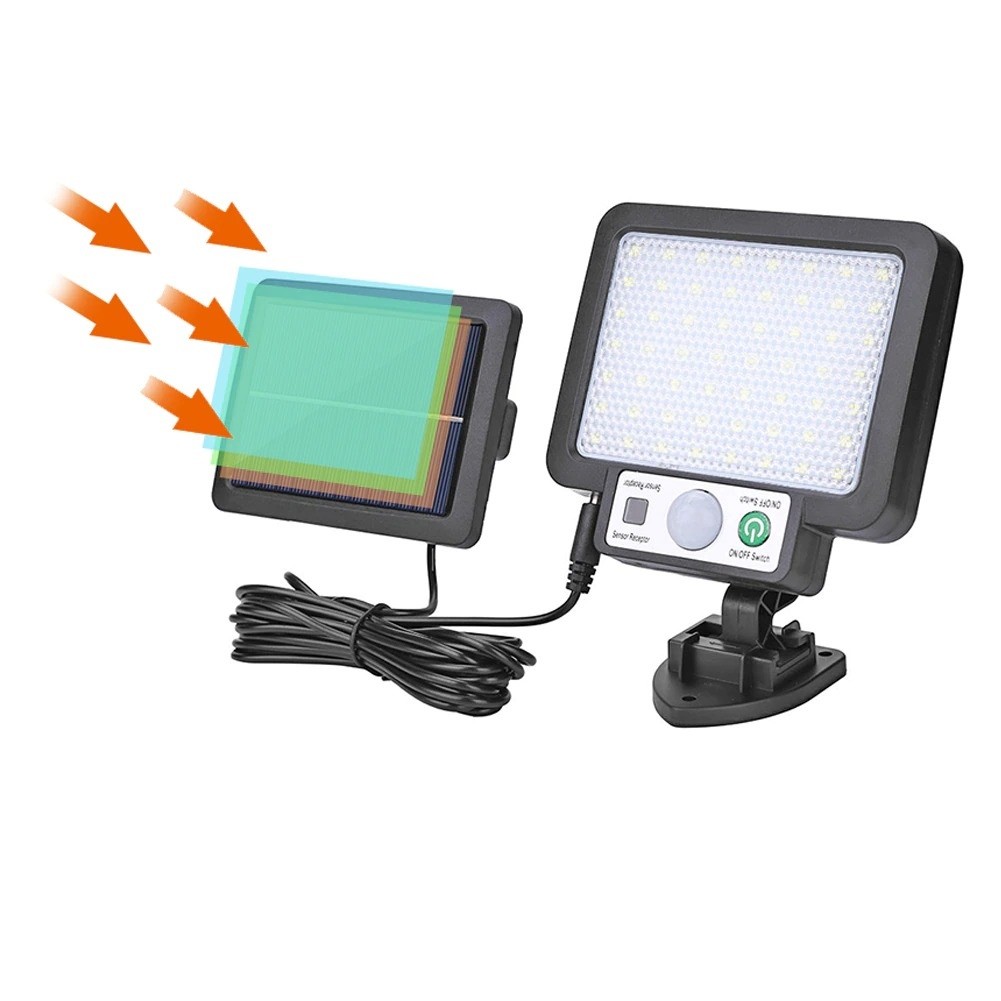 A light that is made from highly durable material. It is charged using sunlight. It has 56 LEDs. The solar outdoor light will illuminate your garden, terrace, pathway, porch, yard or driveway. The light will automatically turn on at night when it detects human movement.
