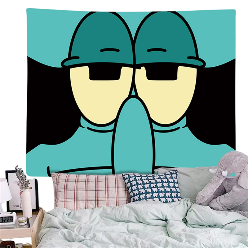 Tapestry 90 x 150 cm Octopus Cuttlefish Cartoon Hanging Fabric Wall Decoration Room Aesthetic Tapestry Fabric Bedroom Background