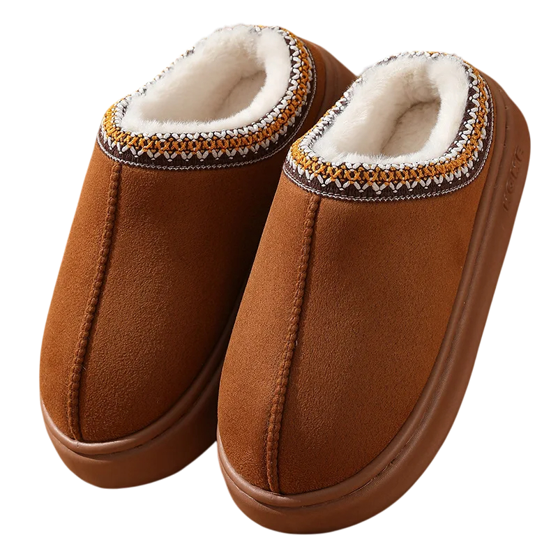Enjoy the cold days in warmth and style with these warm winter slippers featuring an elegant design. They are equipped with a soft inner lining that ensures maximum comfort and thermal insulation throughout the day. The higher cut combined with a sturdy platform provides excellent protection for the feet and instep while giving the slippers great stability. The decorative embroidery around the ankle adds originality and makes these slippers not only a practical choice but also a stylish one. The non-slip sole ensures a safe step on all types of flooring surfaces – from parquet to tiles.