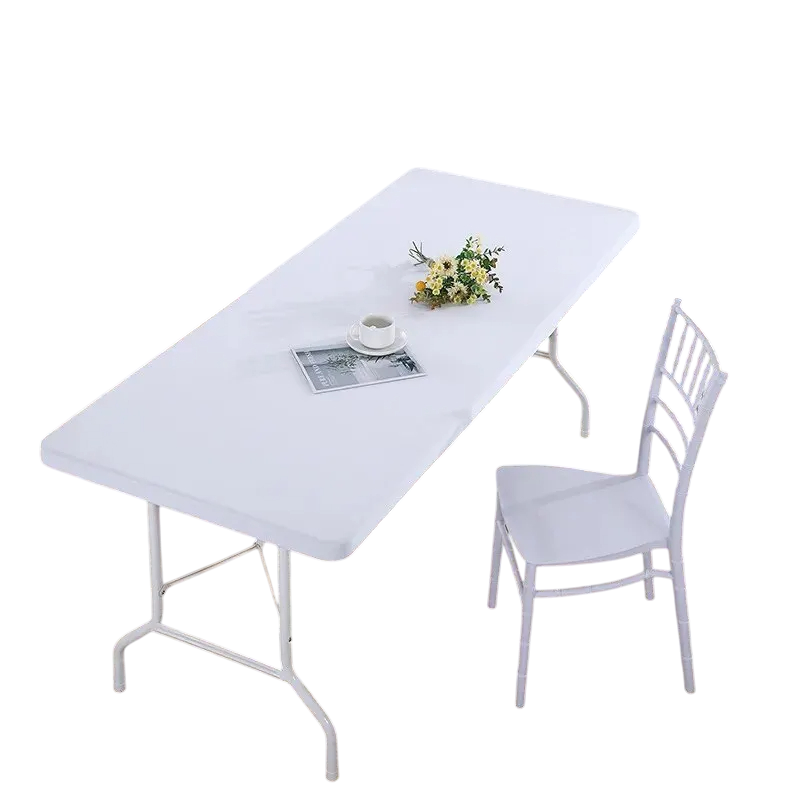 Durable washable elastic tablecloth protects the table and provides an elegant appearance. Ideal for parties, camping, and catering. Easily folds and stores. Full description