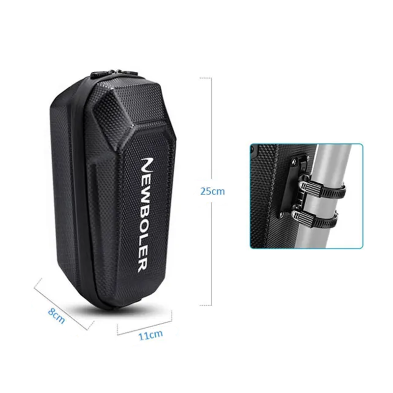Durable and lightweight bag for electric scooters with a waterproof surface, rigid shape, and quick-release system for easy attachment. Full description