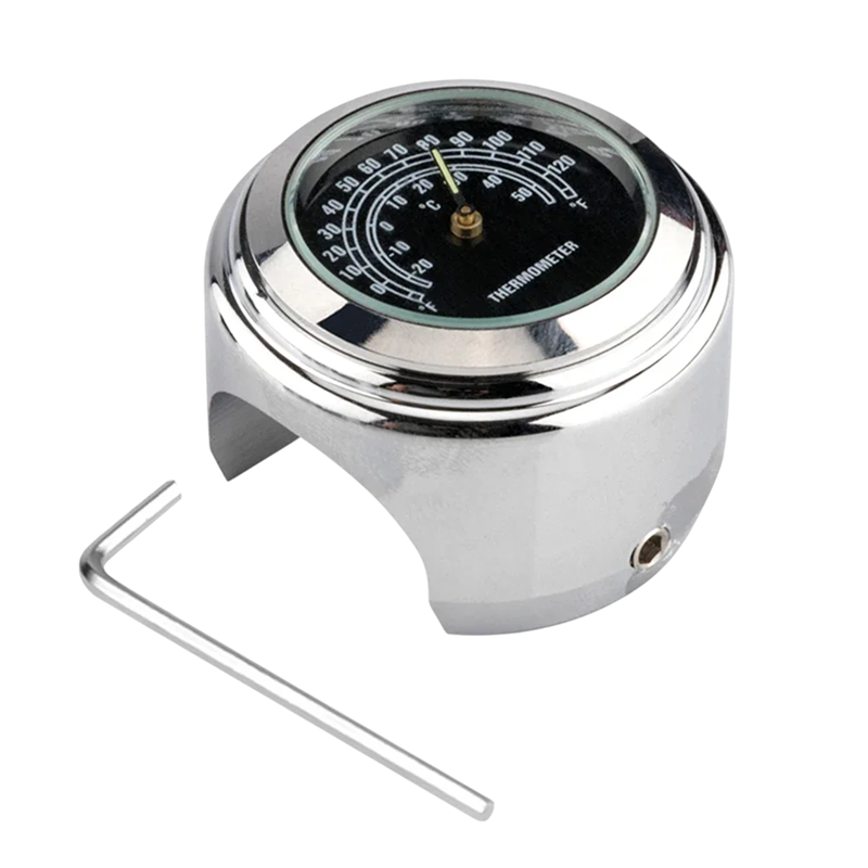 Waterproof Motorcycle Thermometer with Dial Handlebar Accessories 22–25 mm Moto Thermometer with Battery Key and Shock Absorber Included