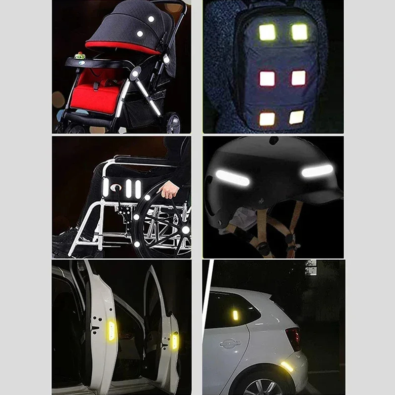 - Contents: 10 pcs reflective stickers (8 x 3 cm)