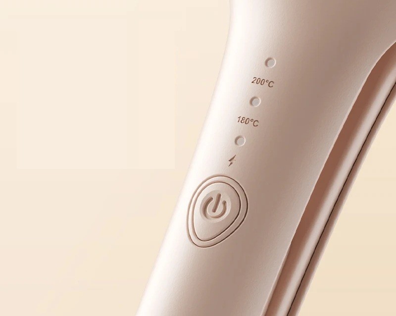 Connect the curling iron to an electrical socket and turn it on using the main button. Use the controls to select the desired temperature of 180 °C or 200 °C according to hair type and wait for the device to heat up. Separate a section of hair, place it between the wave plates, and gently clamp the curling iron. Hold for several seconds according to the desired wave intensity, then release and continue with the next section. After finishing styling, turn off the device and allow it to cool down.