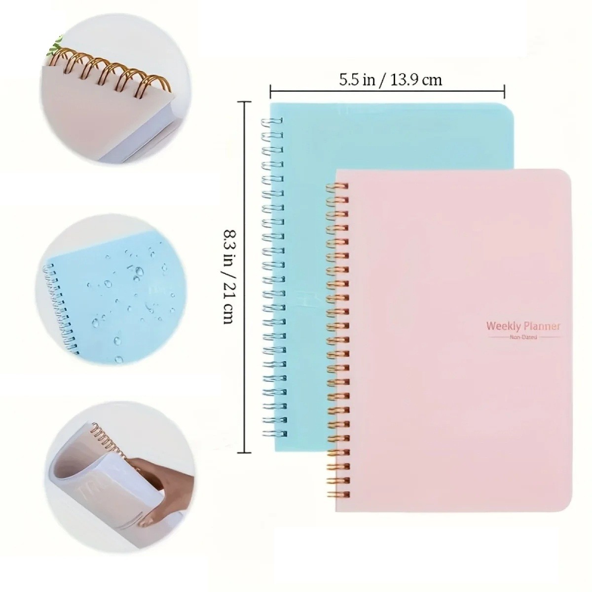 Weekly Planner 13.9 x 21 cm Colourful Spiral Diary for 52 Weeks Habit Tracker Notes Organiser Waterproof Cover