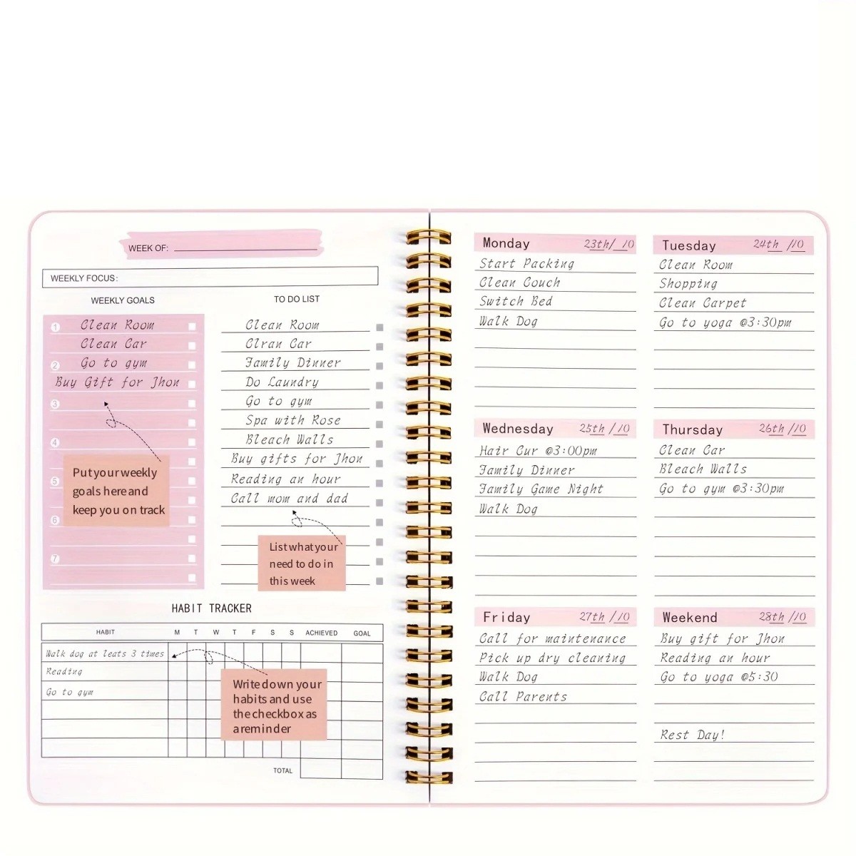 - 52 weeks of planning – schedule, tasks, notes, habit tracker