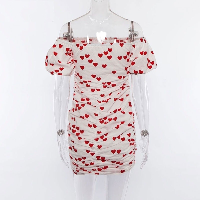 Romantic mini dress with a heart print.