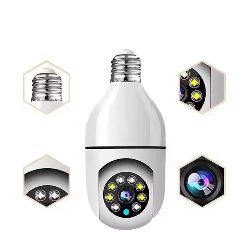 WiFi IP Security Camera for E27 Socket with Night Vision 3MP HD White Camera for Home Surveillance and Remote Monitoring via Mobile