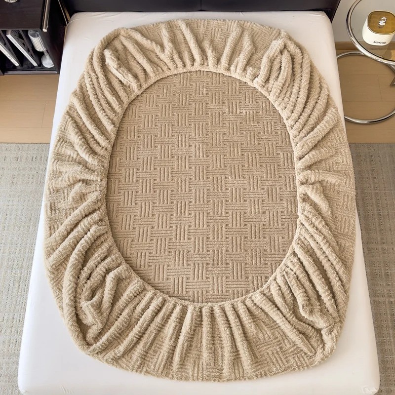 Home page Home page Home & Household Supplies Home Textiles Bed Sheets Winter Plush Fitted Sheet 180 x 200 cm Elastic Mattress Sheet Relief Pattern Soft Warm Sheet