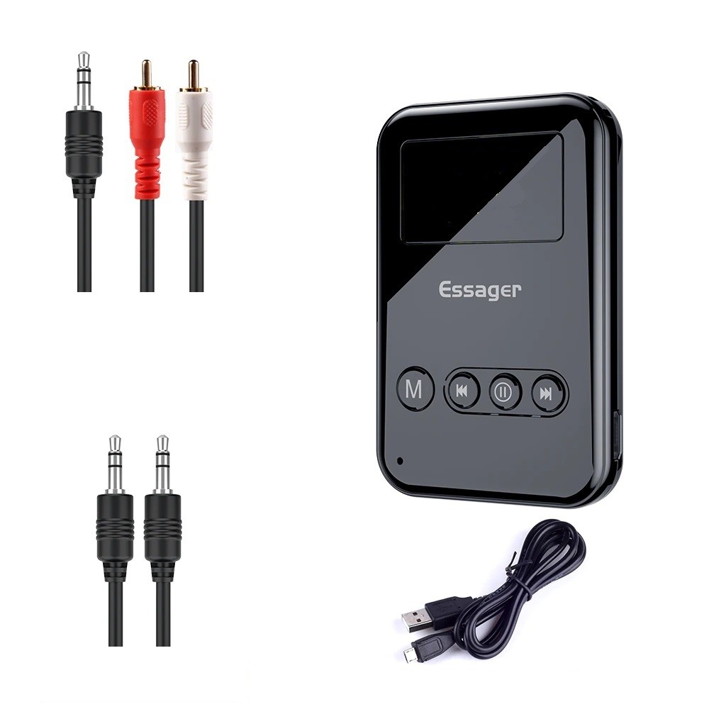 Package Contents: 1x Bluetooth adapter, 1x 3.5 mm jack cable, 1x 3.5 mm jack / RCA cable, 1x USB cable