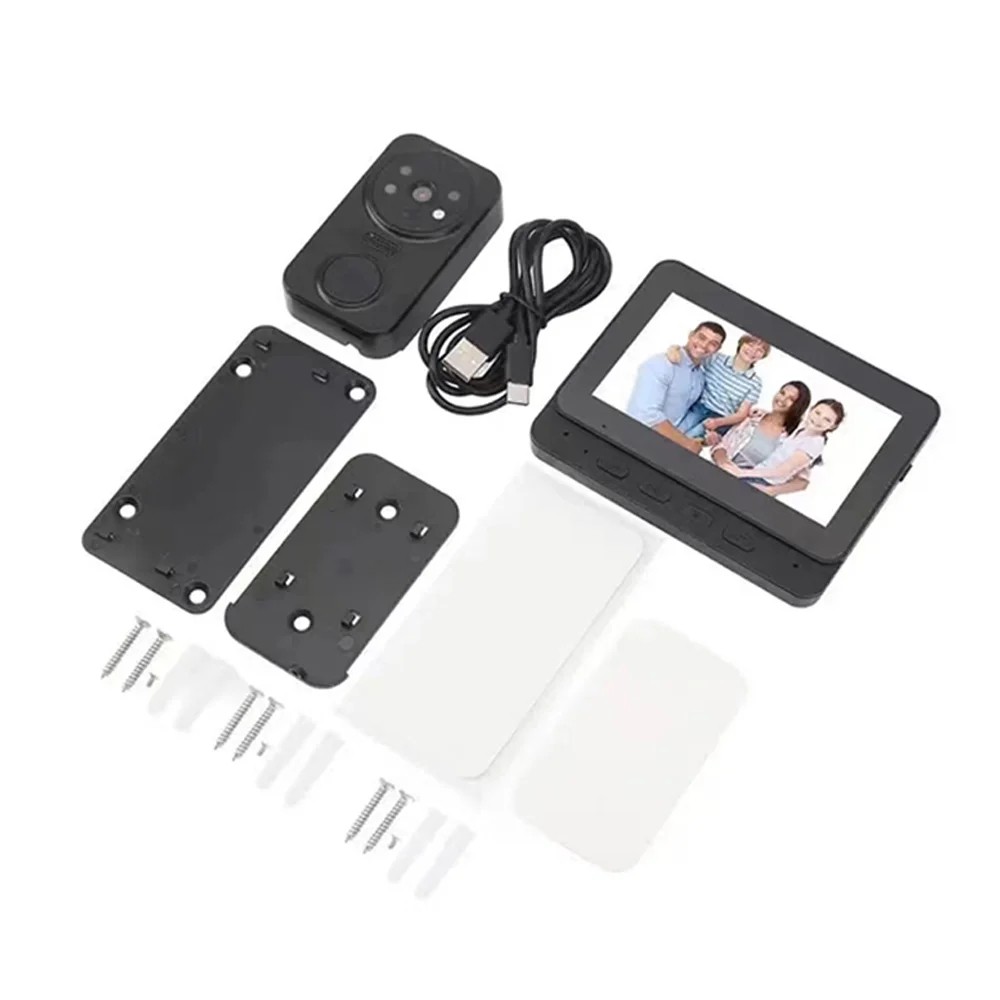 • Instructions for Use: after installing the doorbell and monitor, connect the monitor to an external power supply. The built-in battery is for short-term use only. When the doorbell rings, the image automatically appears on the display, and voice communication can be initiated. To store recordings, insert a compatible memory card.