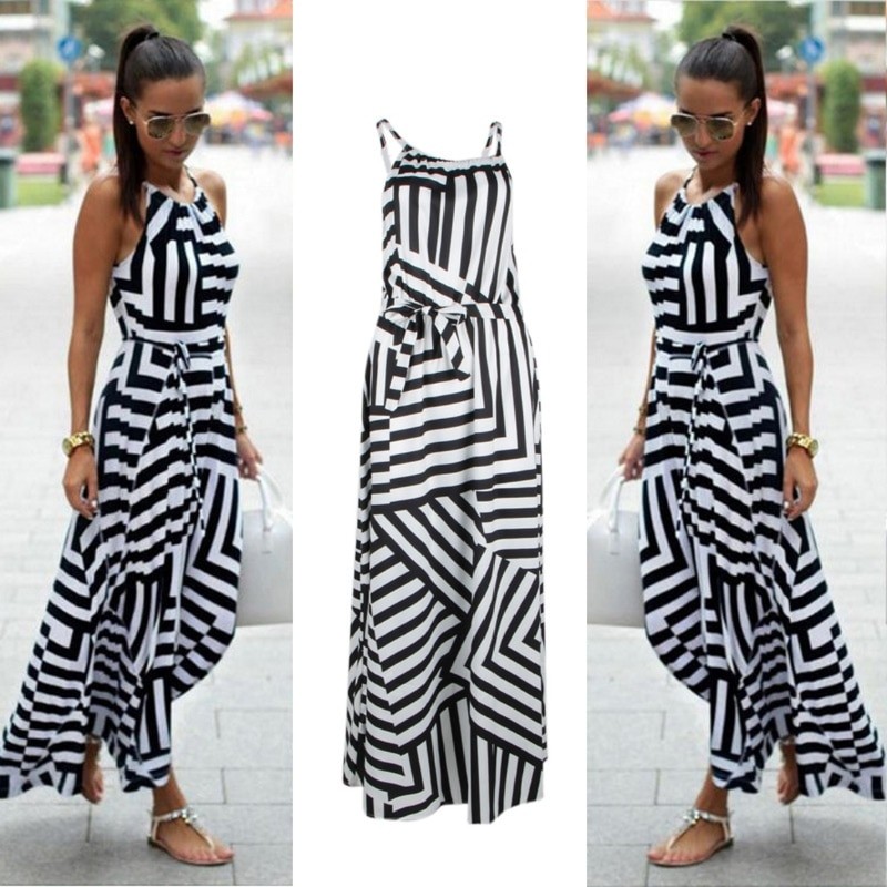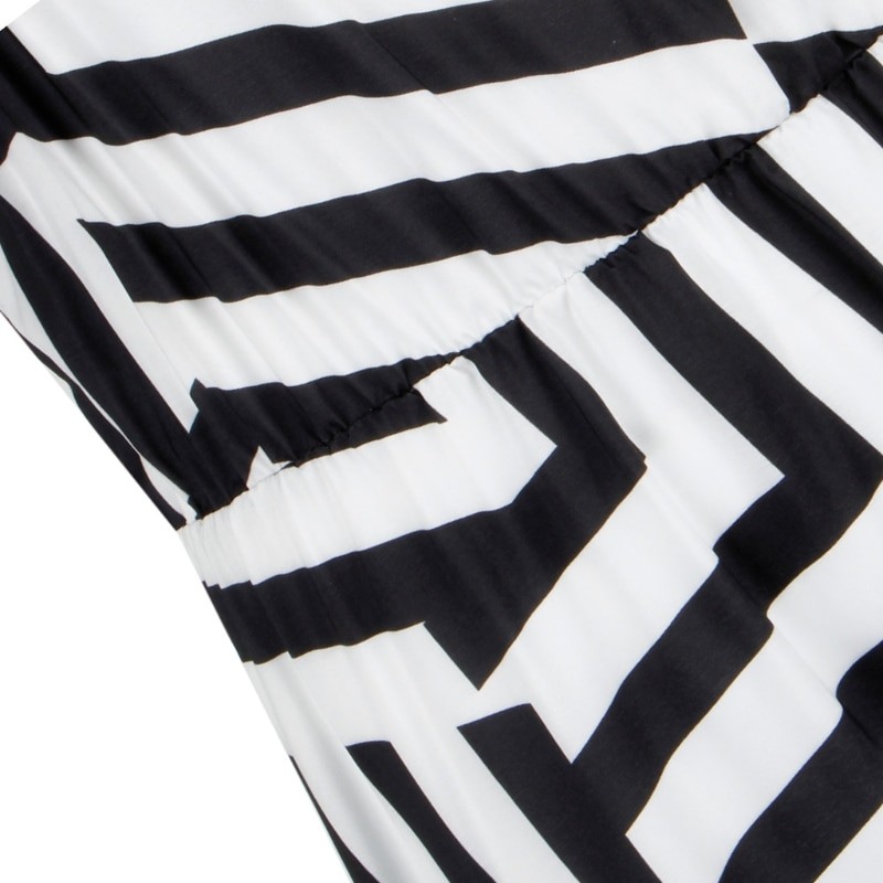 Women's Black and White Long Dress with Print