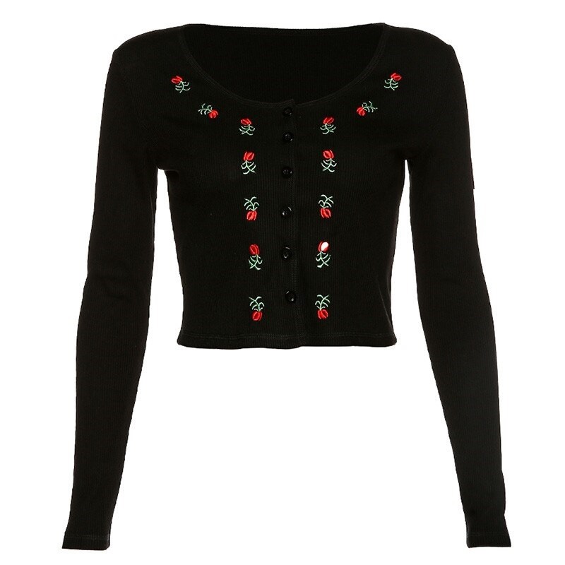Women's Black Crop Top with Buttons
