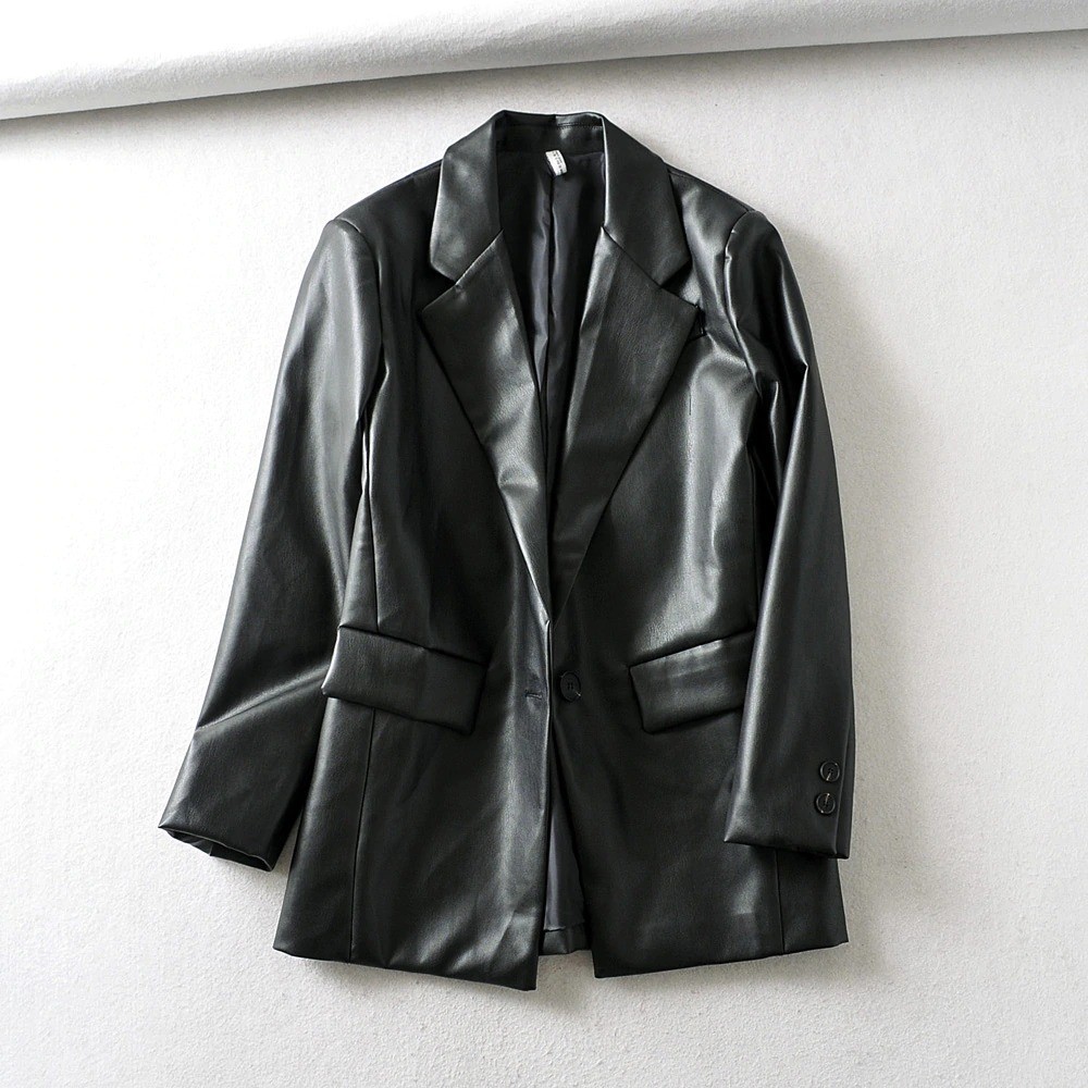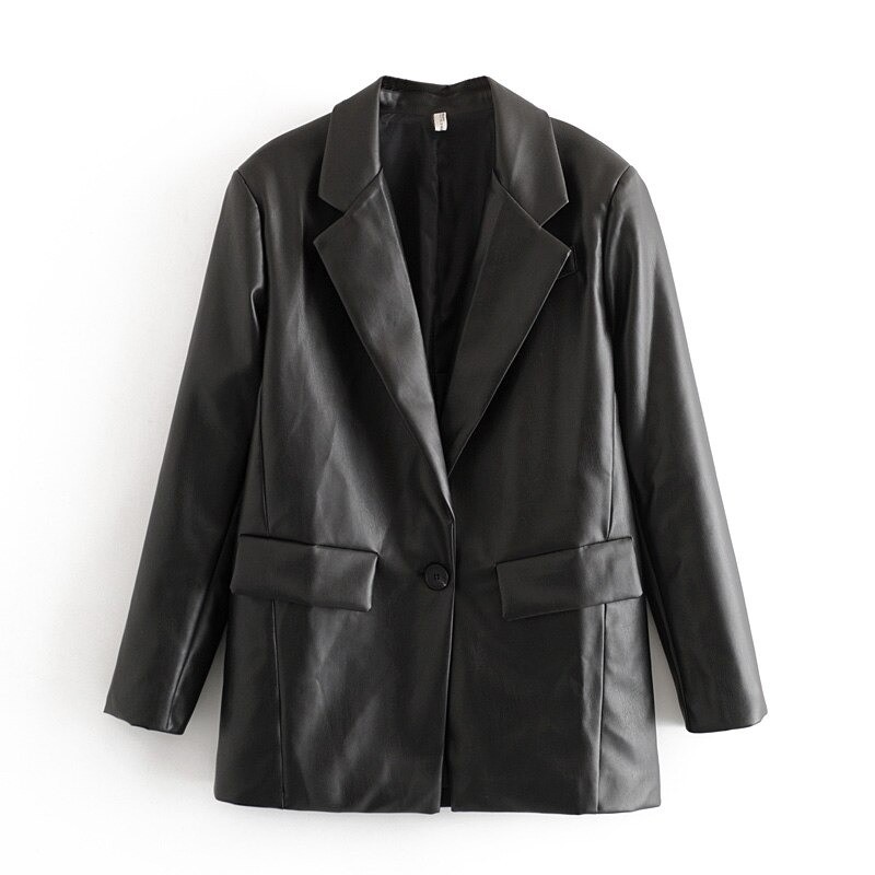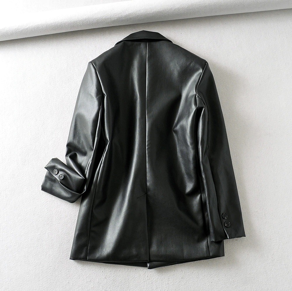 Women's Black Faux Leather Coat