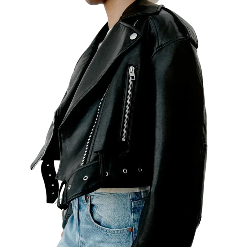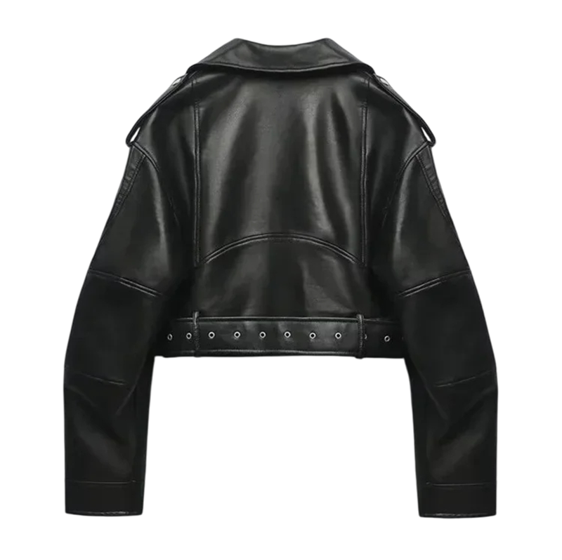 Home page Home page Clothing & Accessories Women’s Clothing Women’s Jackets & Coats Women’s Spring & Autumn Jackets Women's Black Faux Leather Jacket Short Biker Style Asymmetrical Zip Waist Belt Metal Zips Rock Look Fashionable Spring Jacket