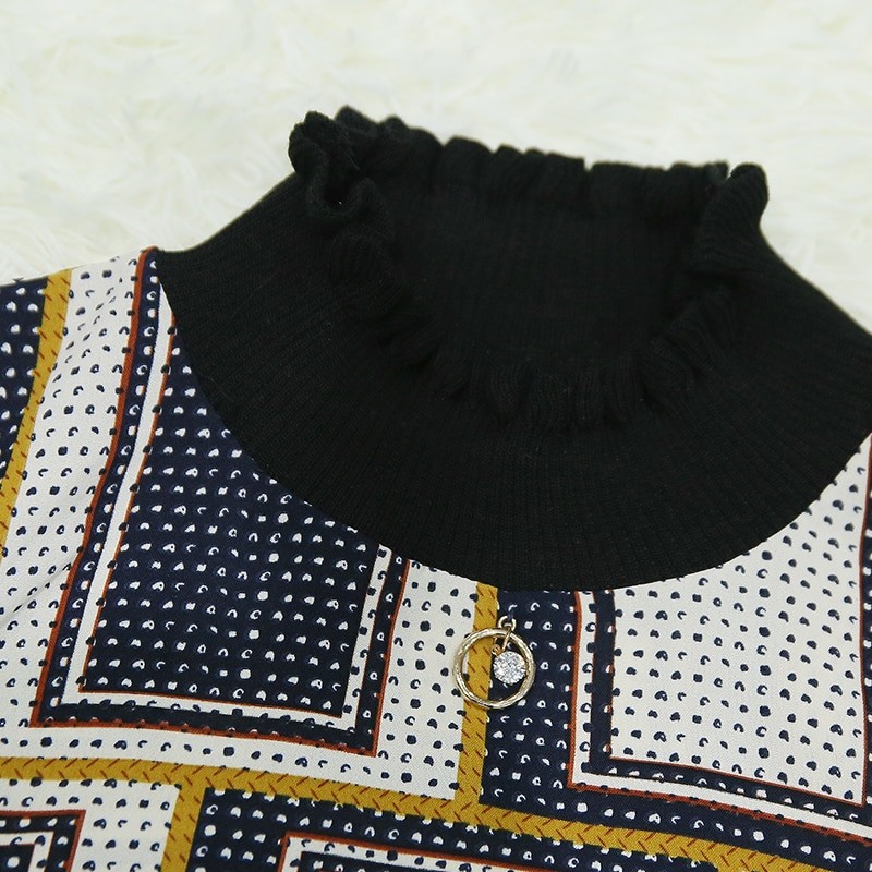 Black frills adorn the collar and sleeves.