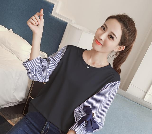 Women's Blouse with Striped Sleeves
