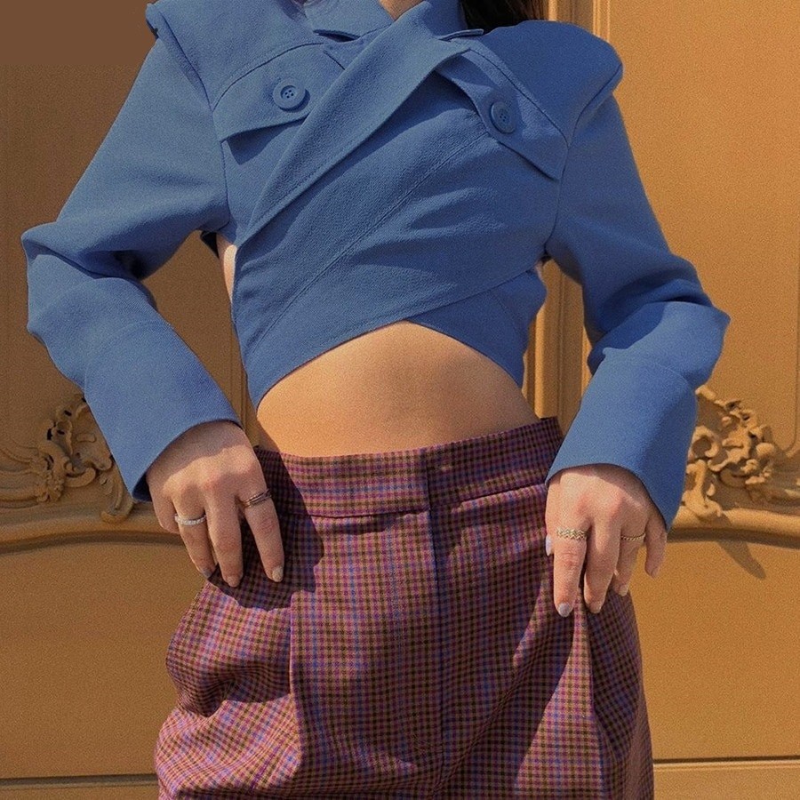 Women's Blue Long Sleeve Crop Top