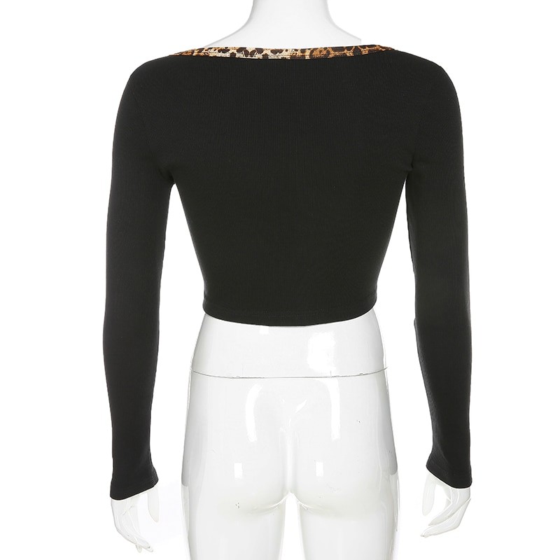 Women's Crop Top with Leopard Trim