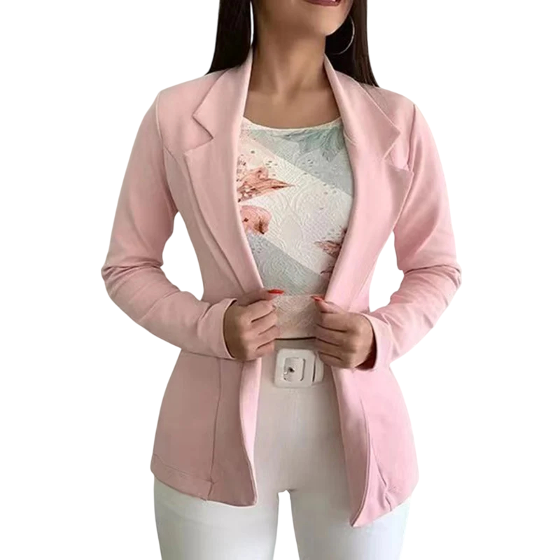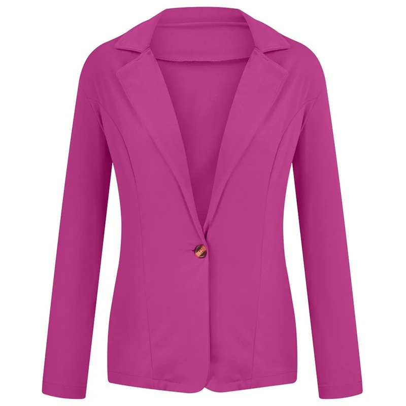 Women's Elegant Blazer with Collar Solid Colour Button-Up Blazer Made of Polyester Stylish Jacket in Various Colours for Everyday Wear