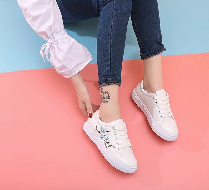 These floral print sneakers on a branch are a great choice for any modern woman or girl.
