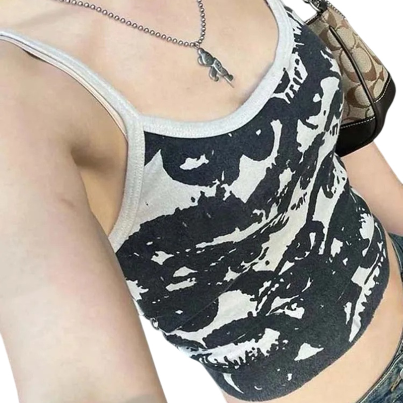 Home page Home page Clothing & Accessories Women’s Clothing Women’s Tank Tops Women's Grey Tank Top with Eye Print Thin Straps O-Neck Crop Top Polyester Cotton Stylish Top