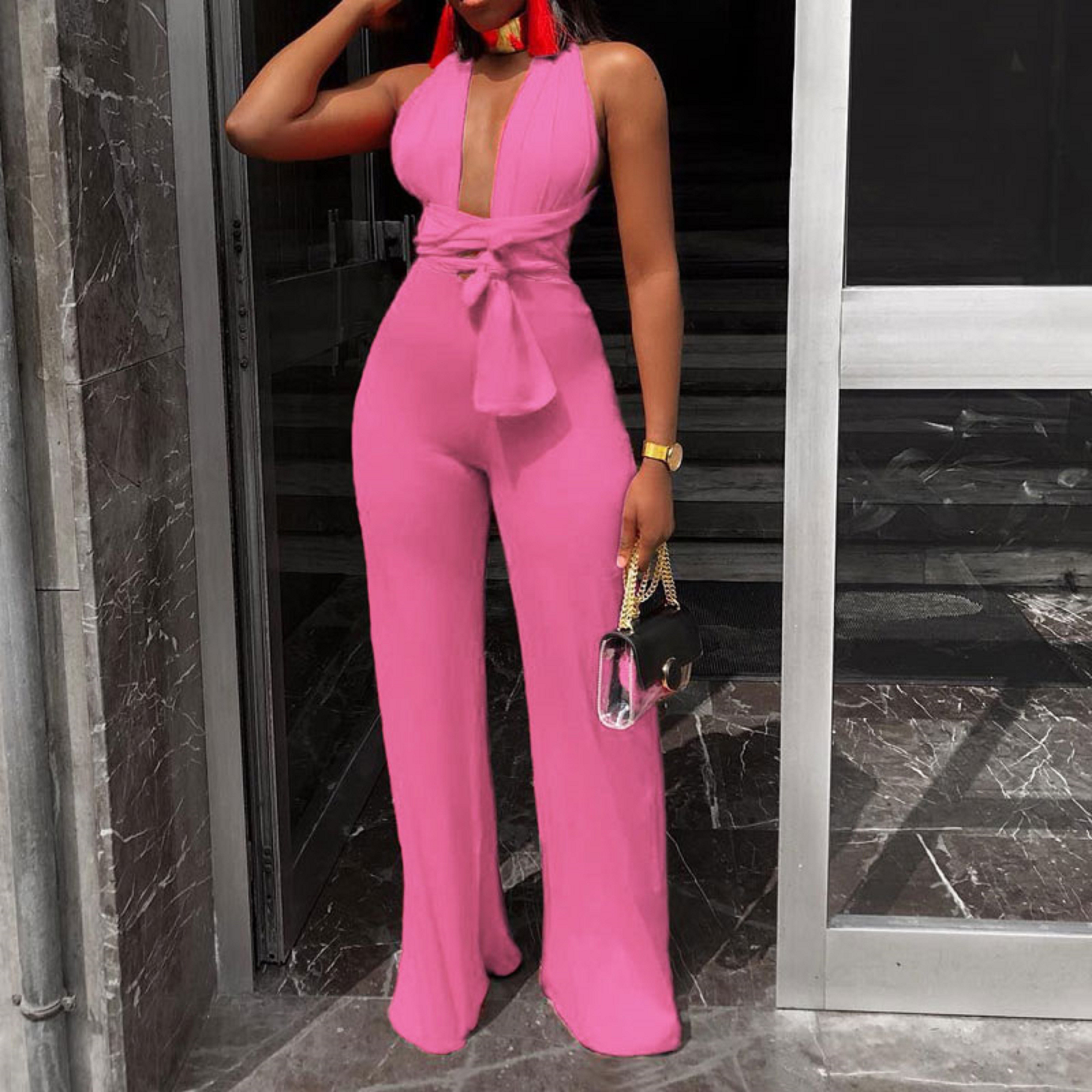 Women's Jumpsuit with Deep Neckline and Tying