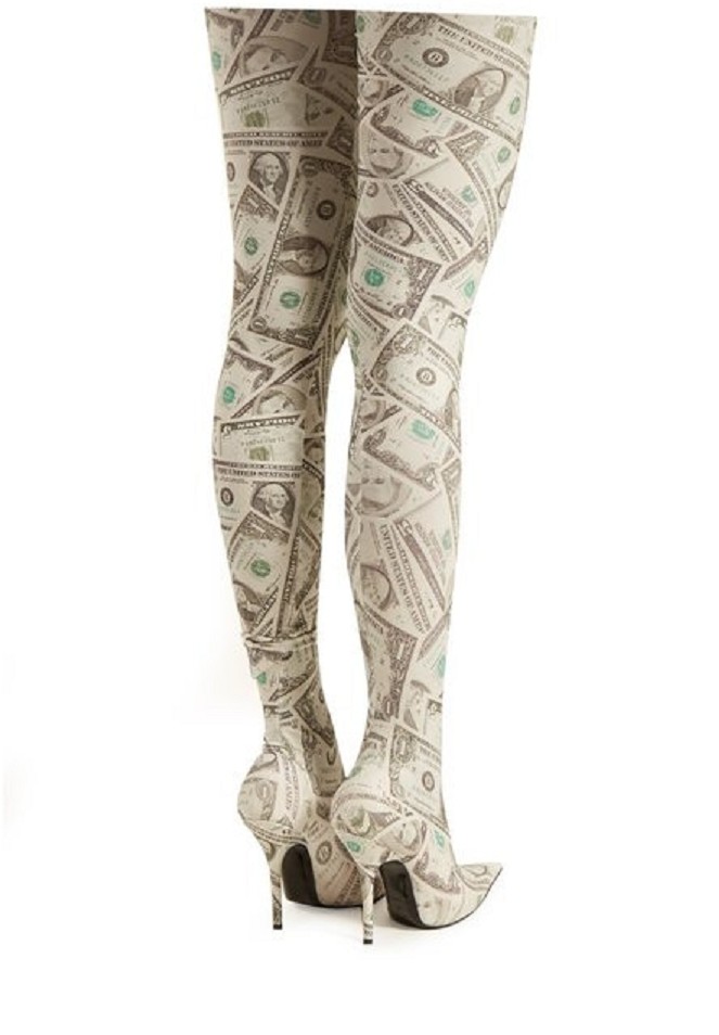 These dollar print boots will entertain those around you. The boots are very comfortable and are high above the knee.