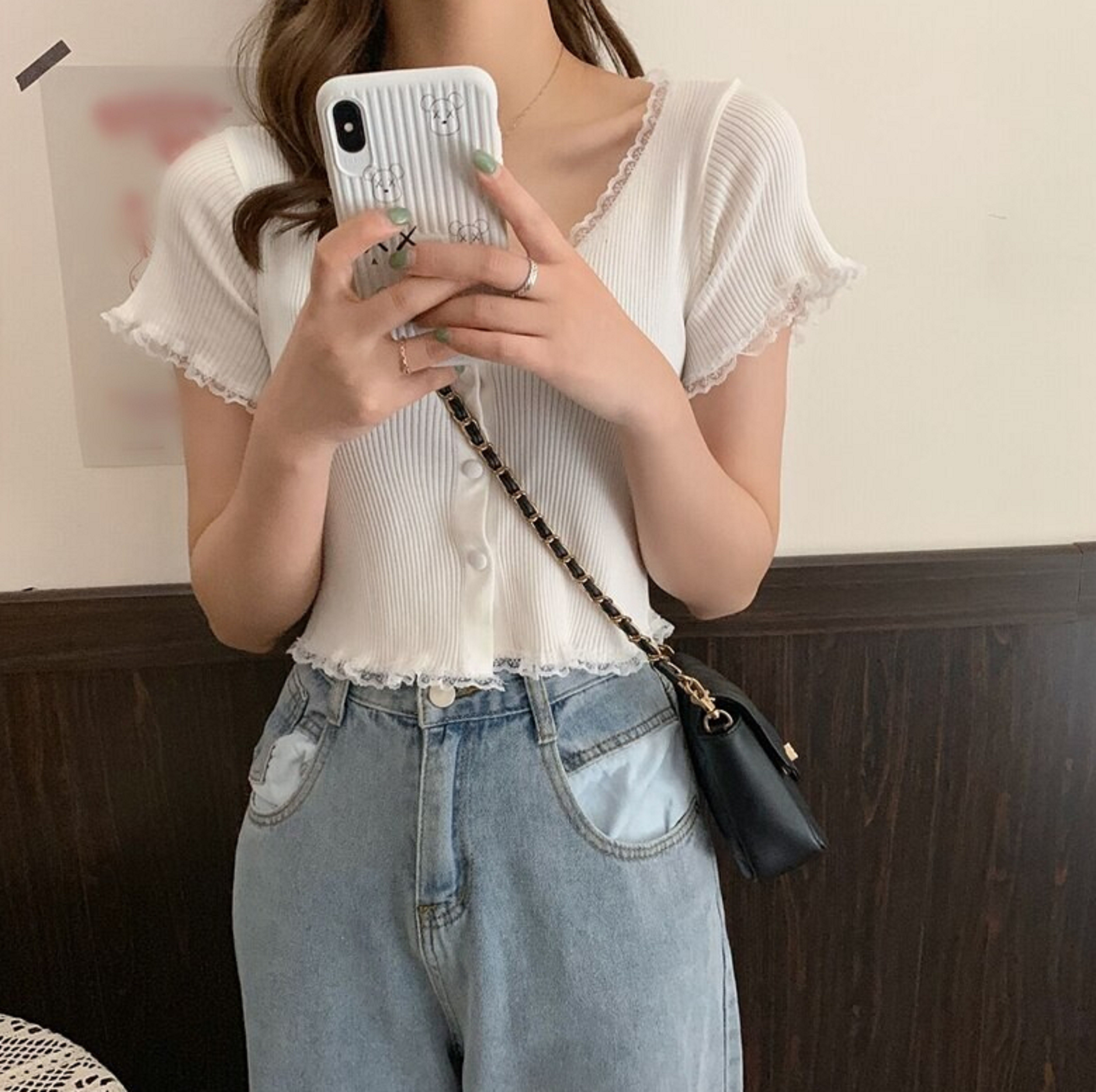 Women's Knitted Crop Top with Buttons