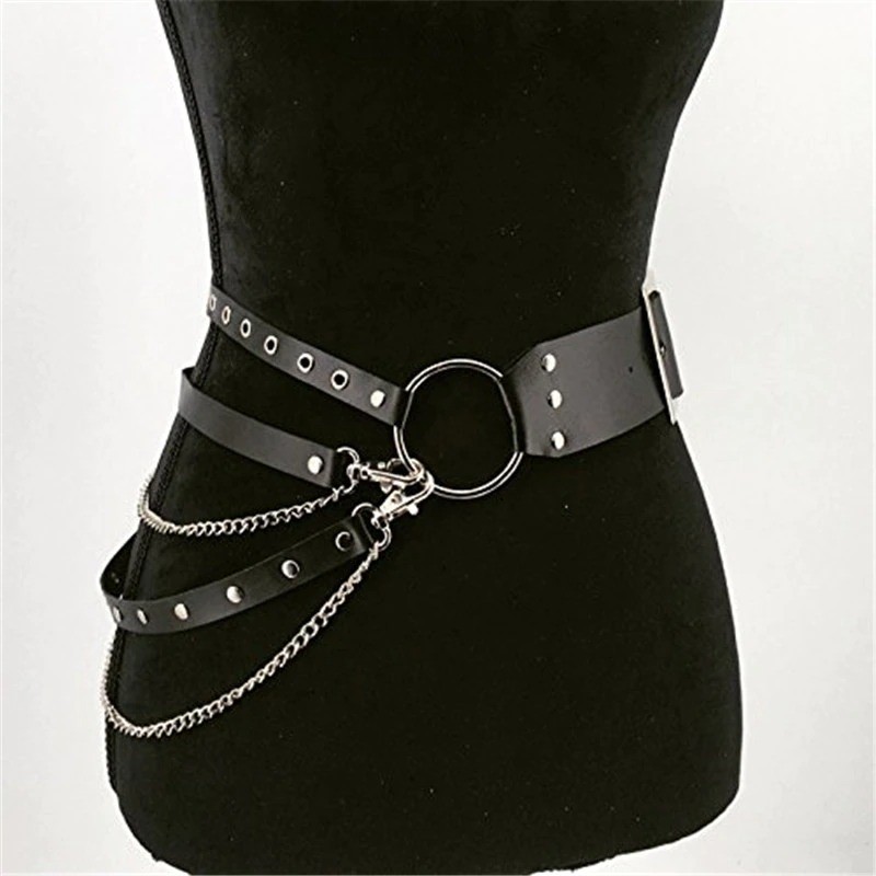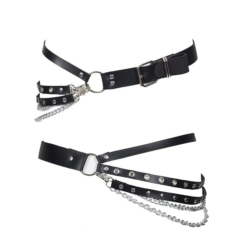 Women's Leather Belt with Chains