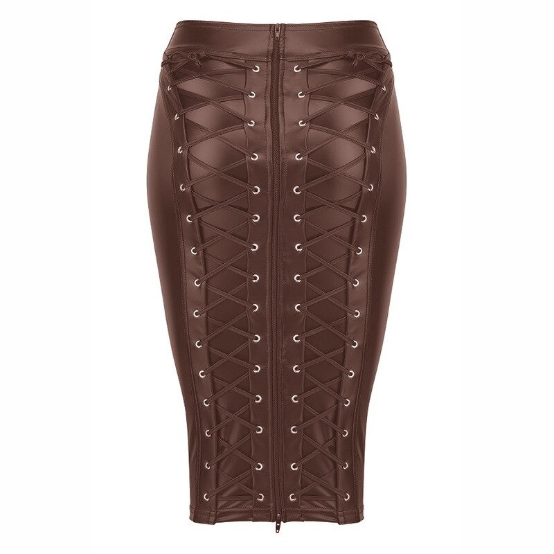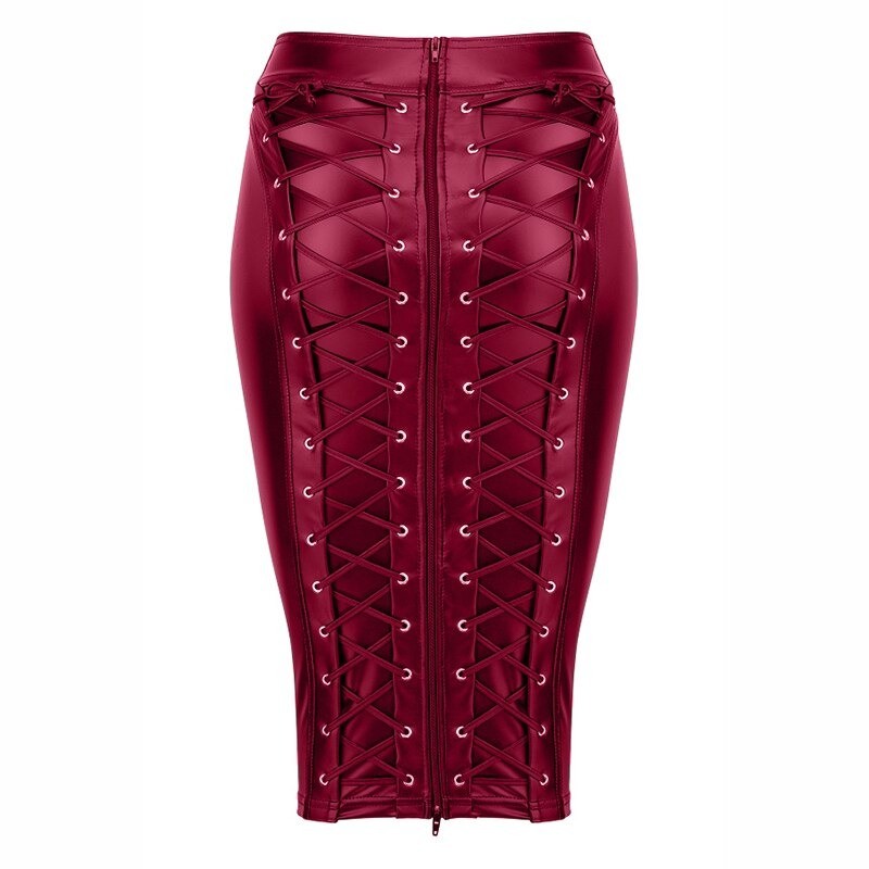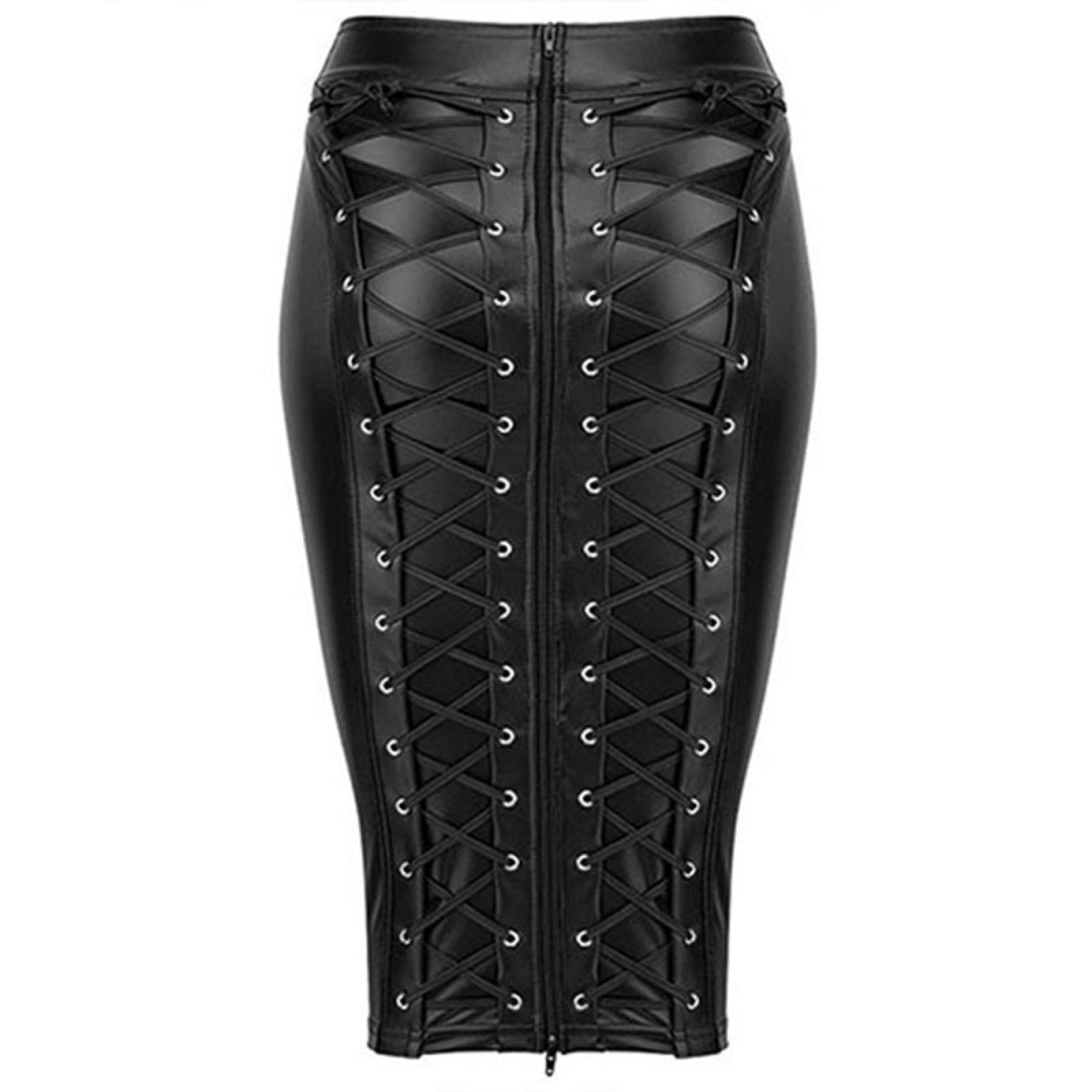 Women's Leather Skirt with Zip and Lacing