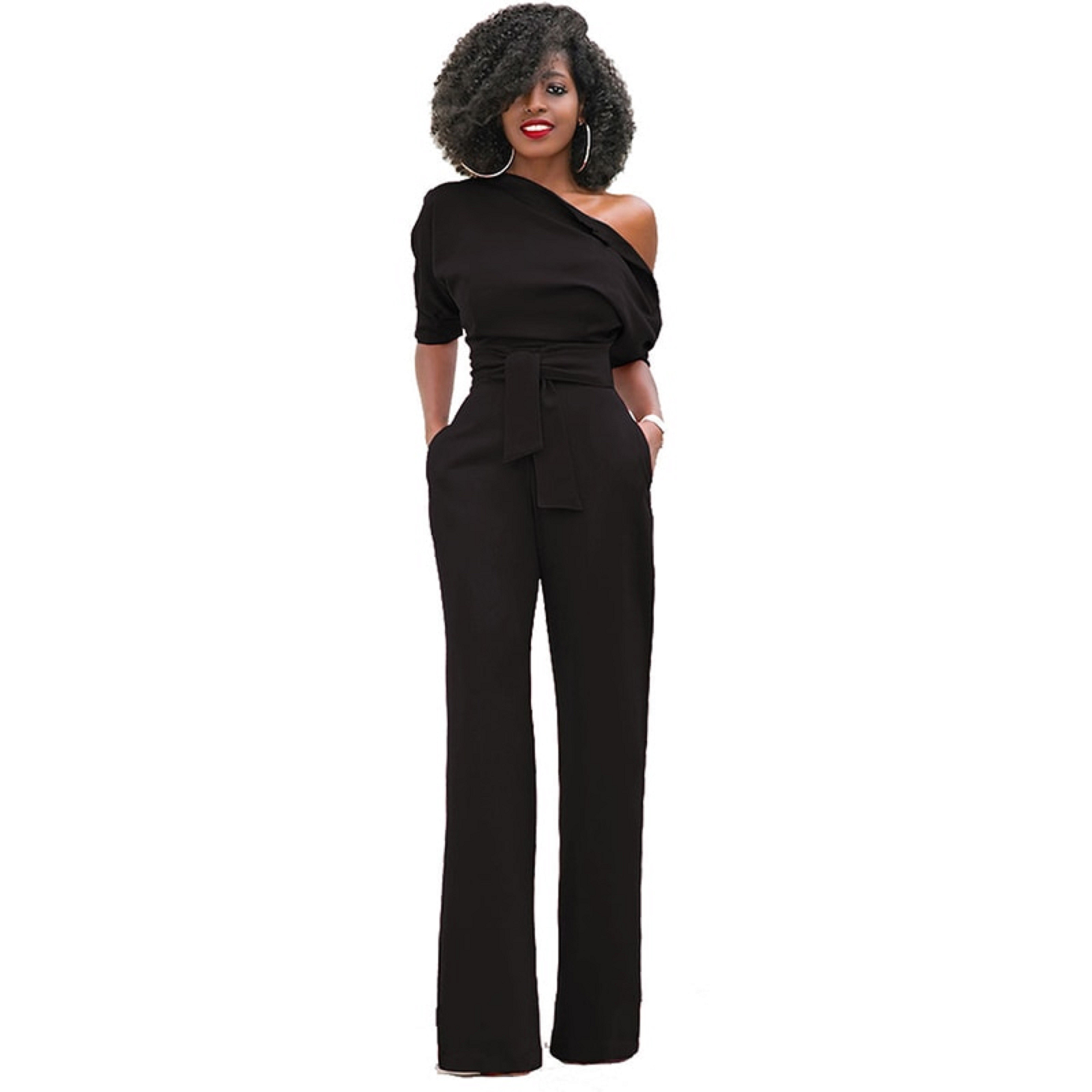 Women's Long Jumpsuit with Asymmetrical Sleeve