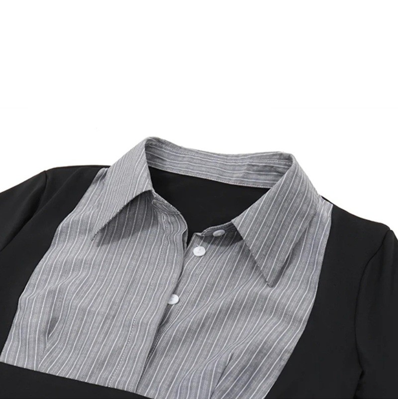The black long sleeve top made of polyester offers an elegant look, easy maintenance, and comfort for everyday and urban wear. Full description