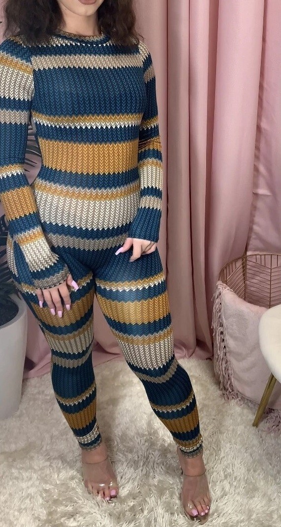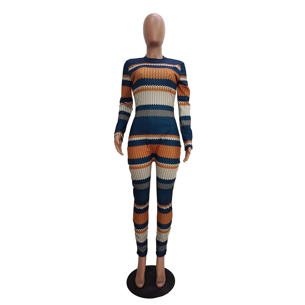 Women's Long Sleeve Striped Jumpsuit