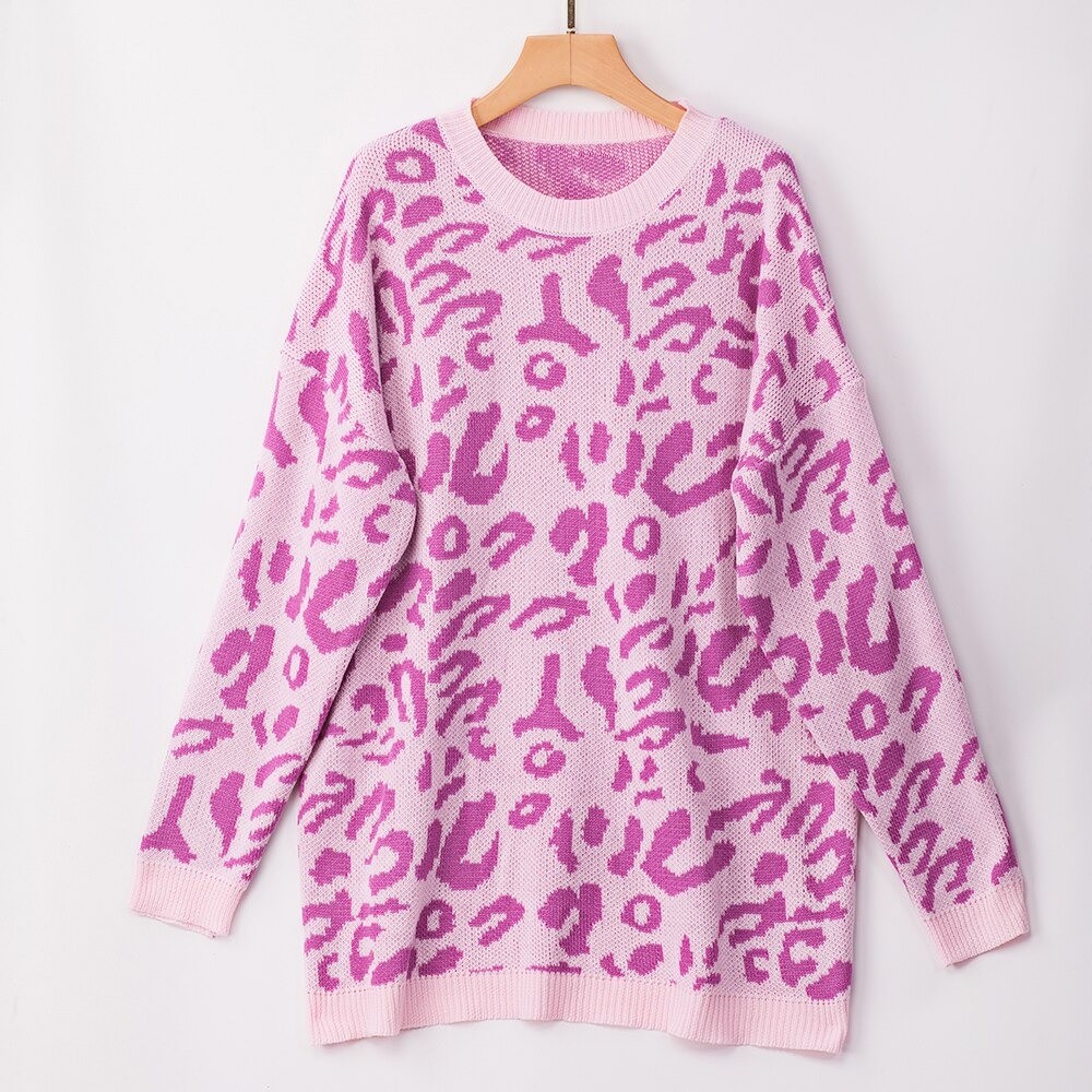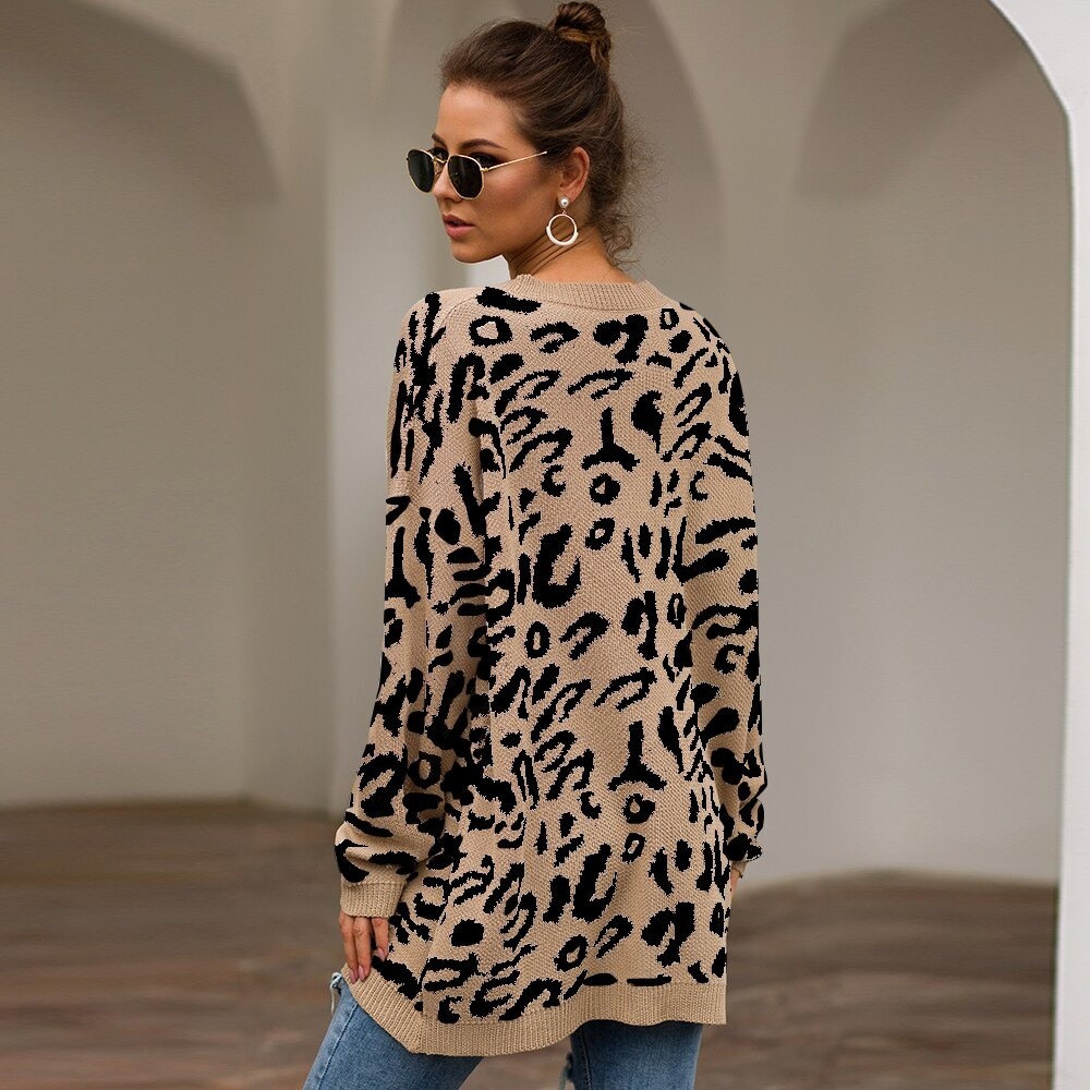 Women's Long Sweater with Leopard Pattern