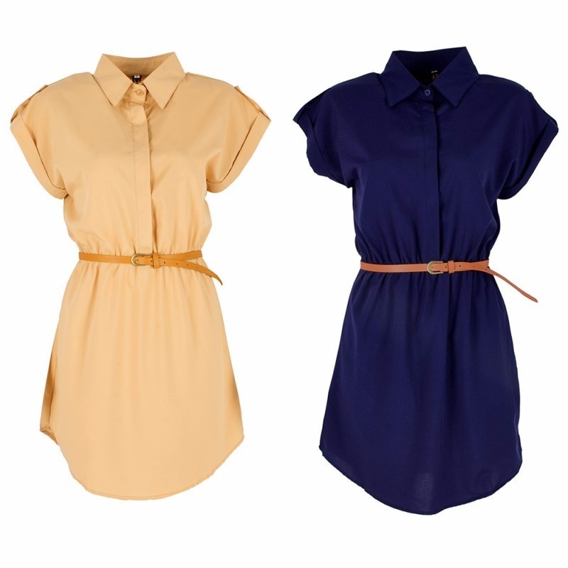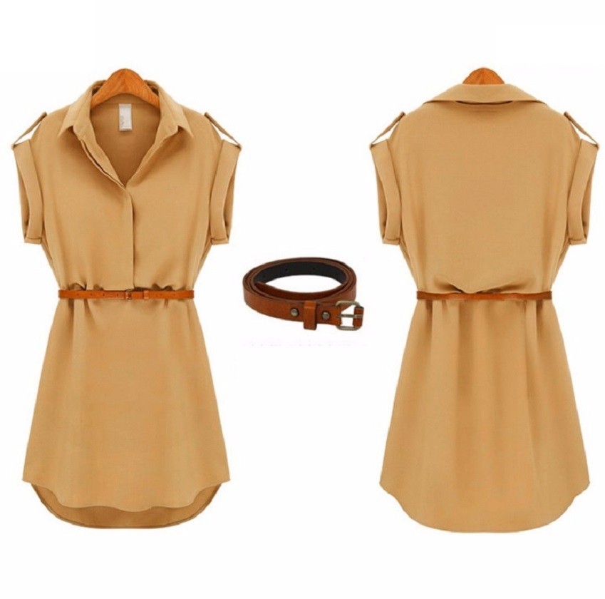 Casual women's chiffon dress in a shirt style with a belt.