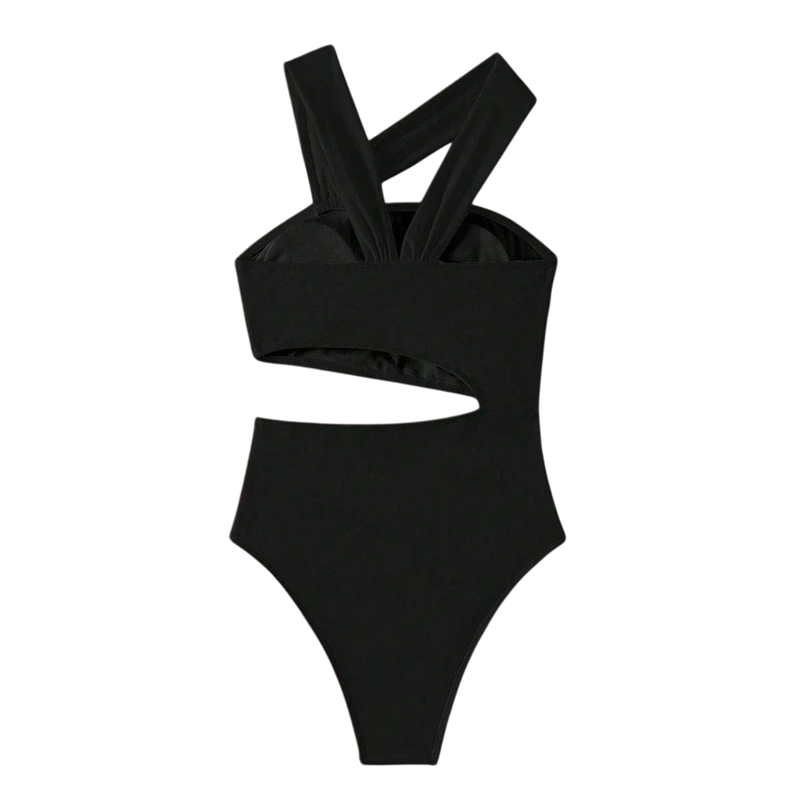 This swimsuit combines elegance, comfort, and modern design in one model. Thanks to the stretchy material, it perfectly conforms to the body and provides confidence with every movement. The asymmetrical cut gives the outfit a striking and contemporary character. If you are looking for stylish one-piece swimsuits that combine classic black with a modern detail, this model is a great choice for the summer season.