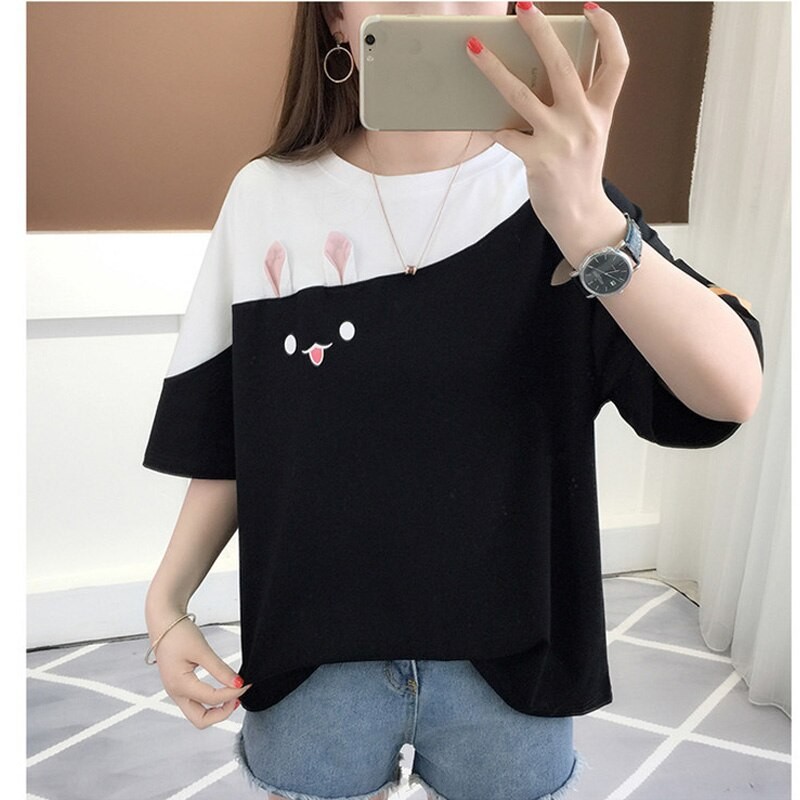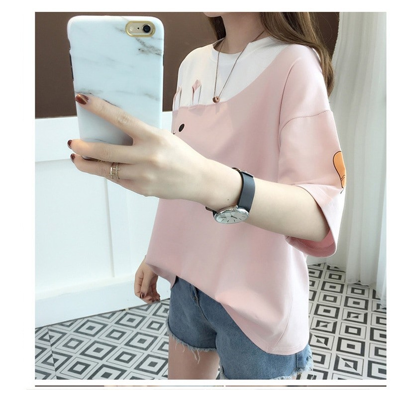 Women's Oversized T-Shirt with Rabbit Motif