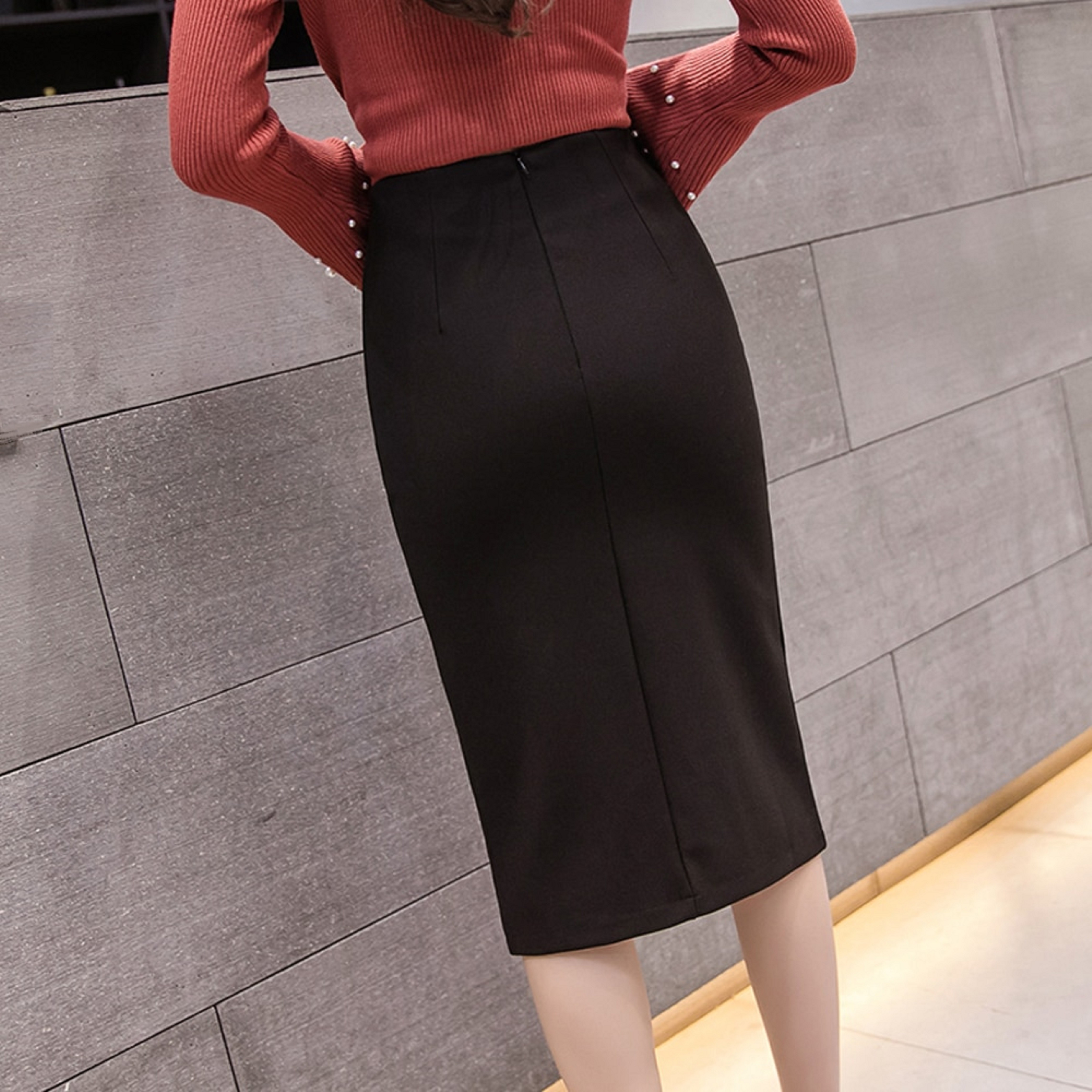 Women's Pencil Skirt with Slit and Buttons