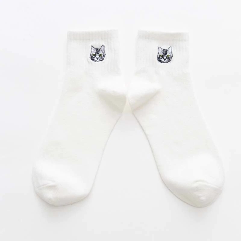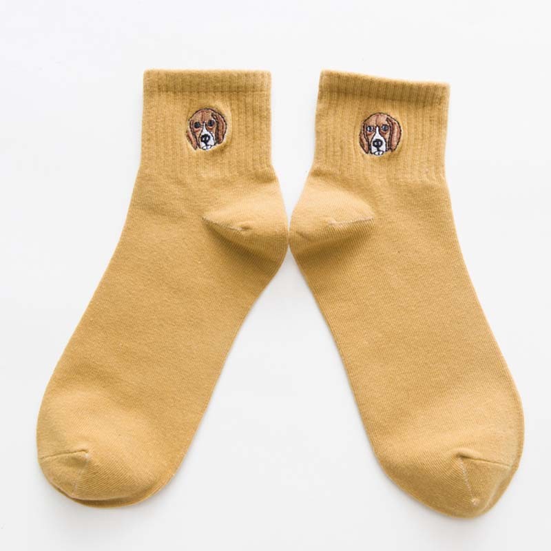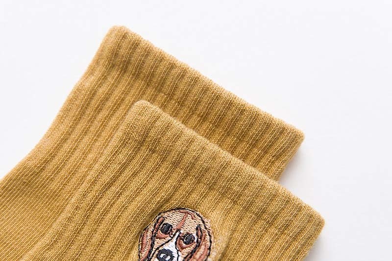 The socks feature embroidered mini images of dogs and cats on the upper part.