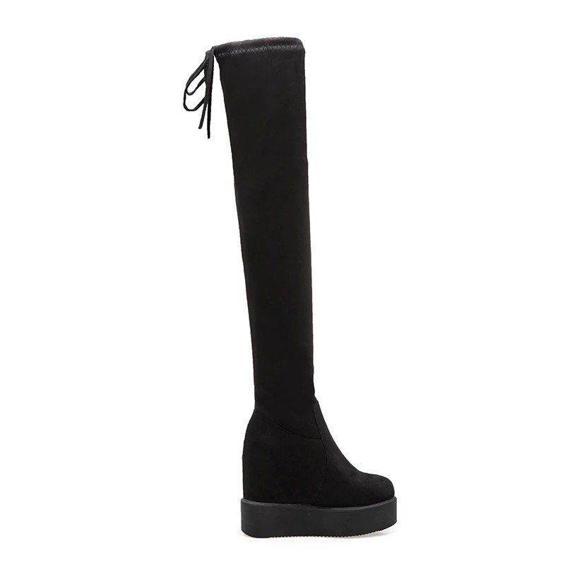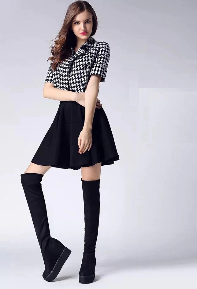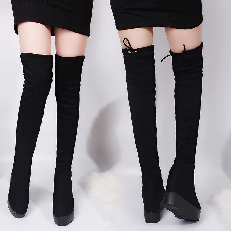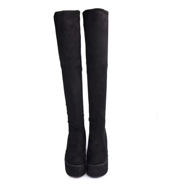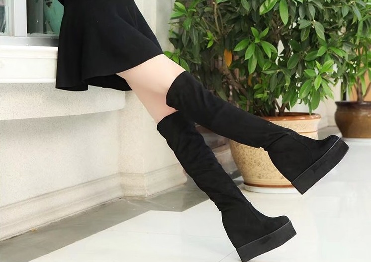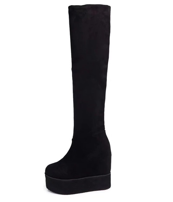 These modern platform boots are ideal for spring or autumn days. The boots are knee-high.