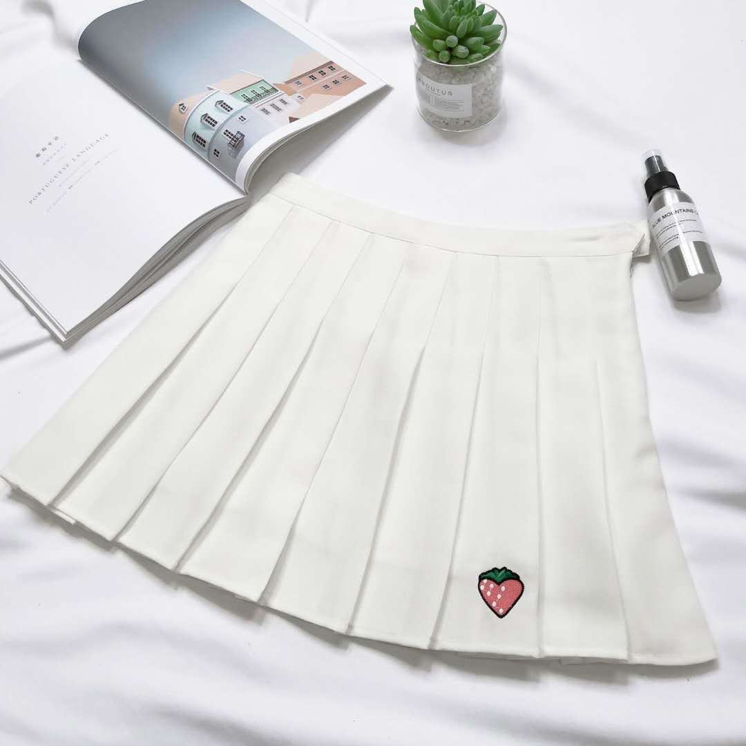 Women's Pleated Mini Skirt with Strawberry