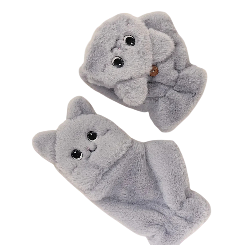 Soft plush mittens with a cute cat pattern will keep your hands warm, offering comfort and a stylish look during the winter season. Full description