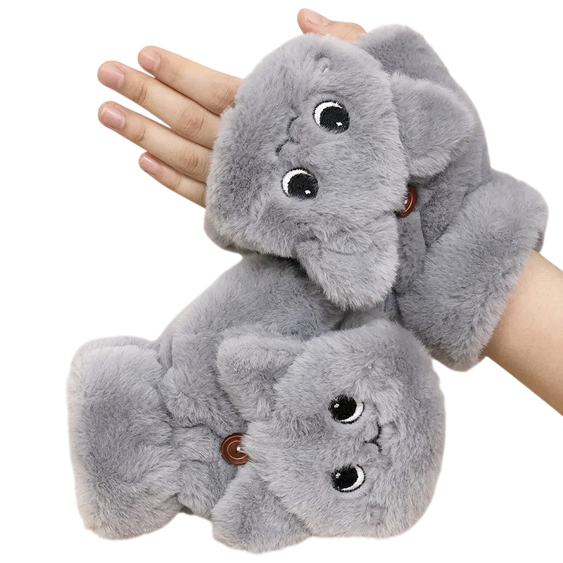 Women's Plush Mittens Universal Size Warm Winter Mittens with Cat Pattern Made of Polyester for Cold Days