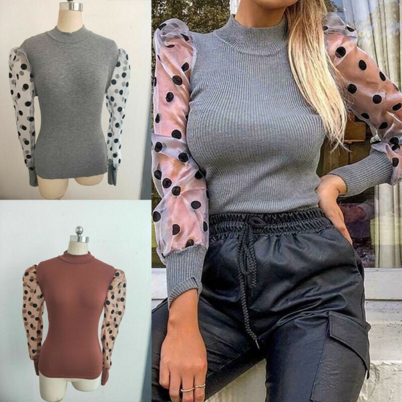 Women's Roll Neck with Sheer Sleeves